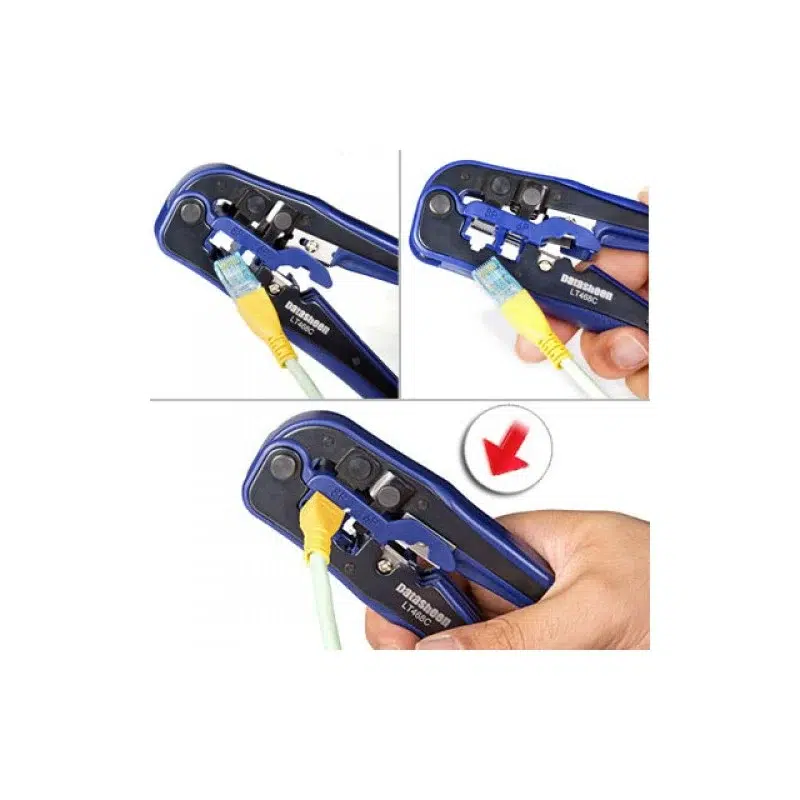 آچار پرس سوکت زن شبکه و تلفن دیتاشین Datasheen LT468C برای بریدن و لخت کردن و برداشتن روکش کابل و پرس کانکتورهای 8 پین شبکه و کانکتورهای 6 پین تلفن و کانکتورهای 4 پین بند گوشی تلفن استفاده میشود. این سوکت زن شبکه از جنس PE است و از فلز سبک ساخته شده است و دارای اندازه کوچکی میباشد و خوش دست است. شما در یک حرکت ساده میتوانید به صورت همزمان کابلهای UTP و STP را ببرید و لخت کنید. |