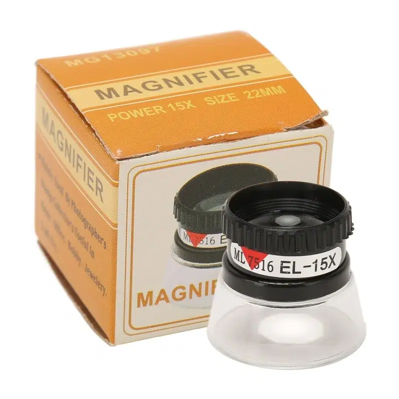 ذره بین چشمی 15X ذره بینی با بزرگنمائی 15 برابر برای افراد فنی که نیاز به ذره بین دارند. مناسب تعمیرات و کار بر روی بردهای الکترونیکی ، تعمیرات ساعت ، طلاسازی و… |