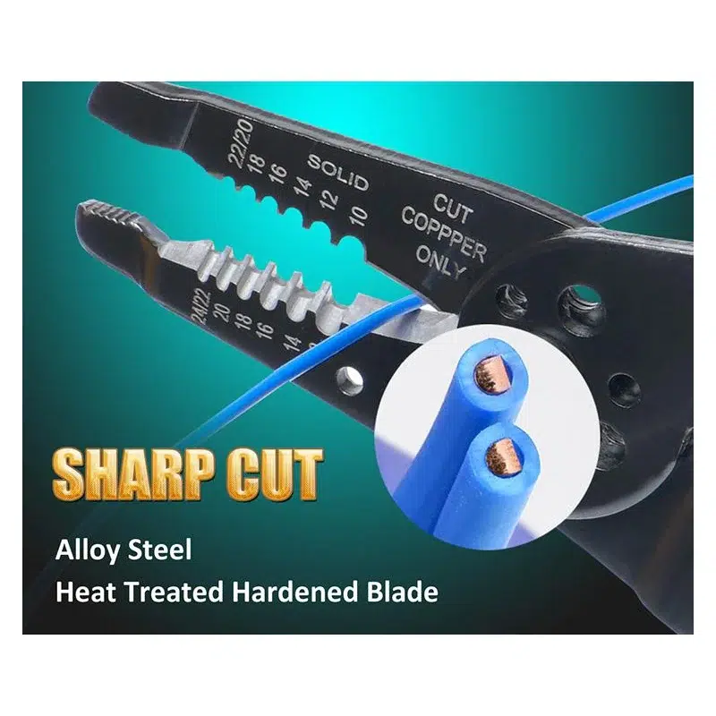 این ابزار دارای انبردست، سیم چین ، پرس سرسیم ، پیچ بر و سیم لخت کن 8 اینچ است.. |