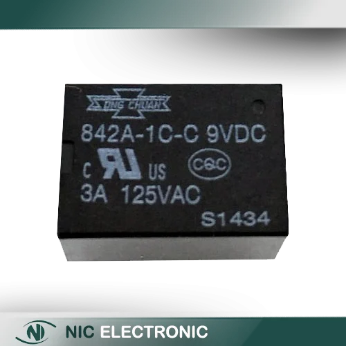 رله 9V مینیاتوری 5 پایه بوبین کنار تایوانی مارک SONG CHUAN کد 842A-1C-C