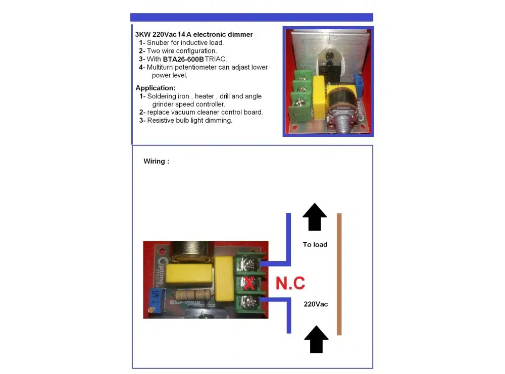 دیمر 3 کیلووات SCR BTA26 - ولتاژ 220 ولت AC