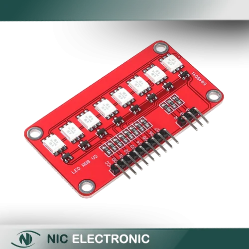 ماژول LED RGB تکی WS2812 از سه رنگ قرمز، سبز و آبی تشکیل شده بطوریکه به آی سی WS2811 متصل است. آی سی WS2811 دیجیتال می باشد که همراه LED RGB هفت رنگ آنرا به فولکالر 16 میلیون رنگ تبدیل میکند. LED WS2812 به شکل SMD دارای 4 پایه است. دو پایه مربوط به برق 5 ولت و دو پایه آن مربوط به دریافت و ارسال داده است. پایه دریافت اطلاعات به کنترلر وصل شده و افکت های رنگی را از آن دریافت و اجرا میکند. پایه خروجی این ال ای دی به ورودی بعدی وصل شده و افکت های LED بعدی را مشخص می کند. از این LED میتوان در ساخت کاردستی های LED، پرده های LED، نورپردازی تزئینی، تابلو های LED، ماکت و … استفاده کرد. |