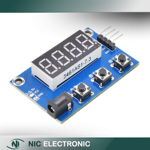 در حالت عادی برای راه اندازی سون سگمنت 4کاناله به روش مولتی پلکس به12پین نیاز دارید ولی با استفاده از این ماژول می توانید تنها با استفاده از دو پین با استفاده از پروتکلi2c اقدام به راه اندازی 4 سون سگمنت کنید. تراشه مورد استفاده در این ماژول TM1637 بوده که قادر به پشتیبانی از سون سگمنت ها آند مشترک است. ولتاژ کاری این ماژول 3.3~5V بوده که در ولتاژ 5V حداکثر جریان 80 میلی آمپر می کشد. پایه ها خروجی در این ماژول به شرح زیر است: |
