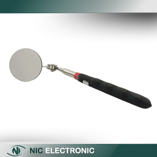 Foldable mirror with stainless steel back. Used to visually inspect hidden locations. It does Double joint for 360 ° display. Made of hardened spring steel for free movement and holding in the desired position. Replaceable, metallized, with copper. Stable inner hex rods prevent the mirror from taking